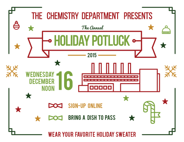 Start digging out your winter sweaters. The annual Holiday Potluck will take place on Wednesday, December 16th, 2015 at noon in the Tuttle Conference Room. More details will be arriving via email in the coming days.